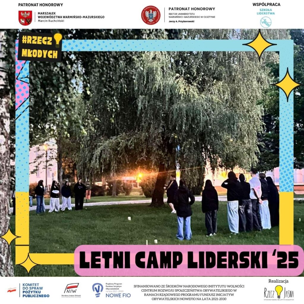 Camp Liderski to przestrzeń, w której młodzi ludzie rozwijają kompetencje społeczne, liderskie i organizacyjne. To także okazja do stworzenia trwałych relacji z innymi liderami i liderkami, które zaprocentują w przyszłości.