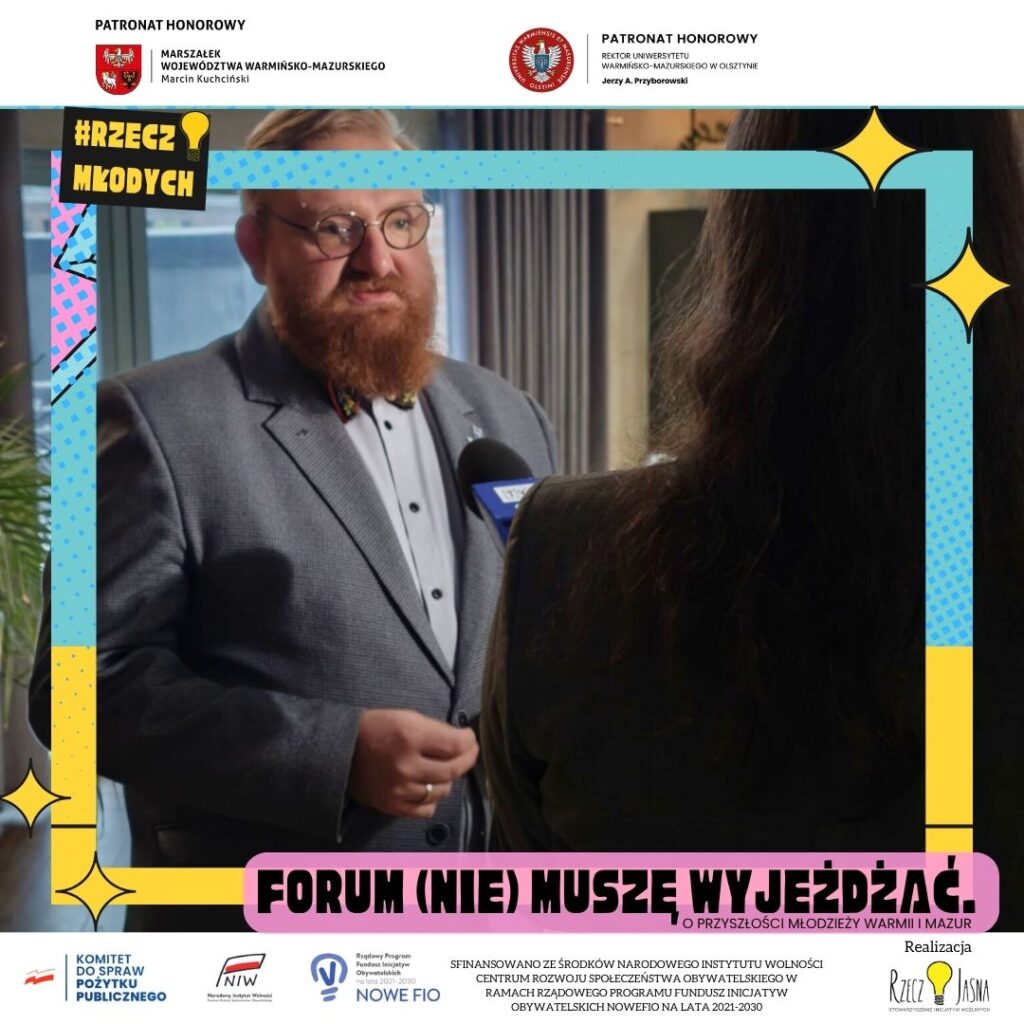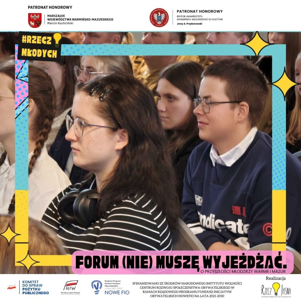 Czy młodzi ludzie są skazani na wyjazd z Warmii i Mazur by realizować swoje ambicje? Udowodnimy, że “(NIE) MUSZĘ WYJEŻDŻAĆ” może stać się realnym scenariuszem, jeśli głos młodego pokolenia zostanie potraktowany poważnie i włączony wprost do nowej Strategii Rozwoju Województwa.